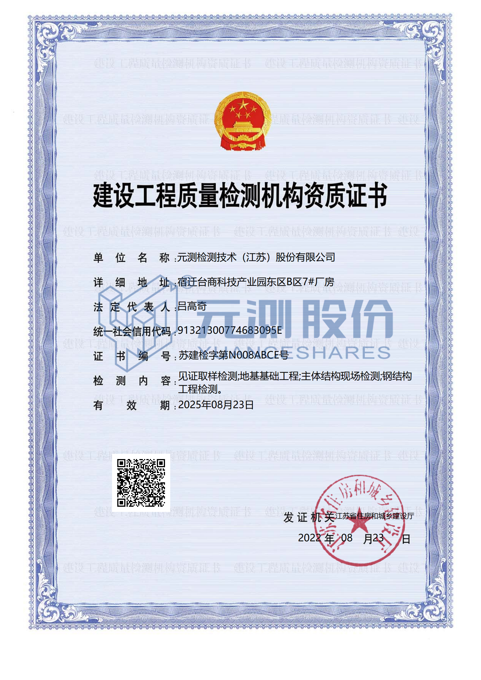 元測(cè)檢測(cè)技術(shù)(江蘇)股份有限公司從事的是國(guó)家鼓勵(lì)發(fā)展的現(xiàn)代服務(wù)業(yè)、高新技術(shù)服務(wù)業(yè)。公司成立于2005年5月,位于國(guó)家級(jí)宿遷市經(jīng)濟(jì)技術(shù)開(kāi)發(fā)區(qū)臺(tái)商科技產(chǎn)業(yè)園東區(qū)桃園路B7棟和蘇州市姑蘇區(qū)學(xué)士街……查看更多>>