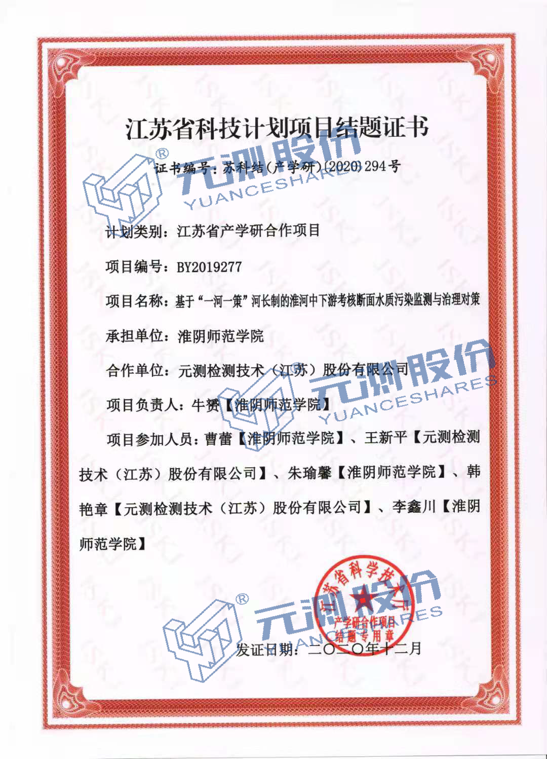 • 江蘇省科技計(jì)劃項(xiàng)目結(jié)題證書(shū)
