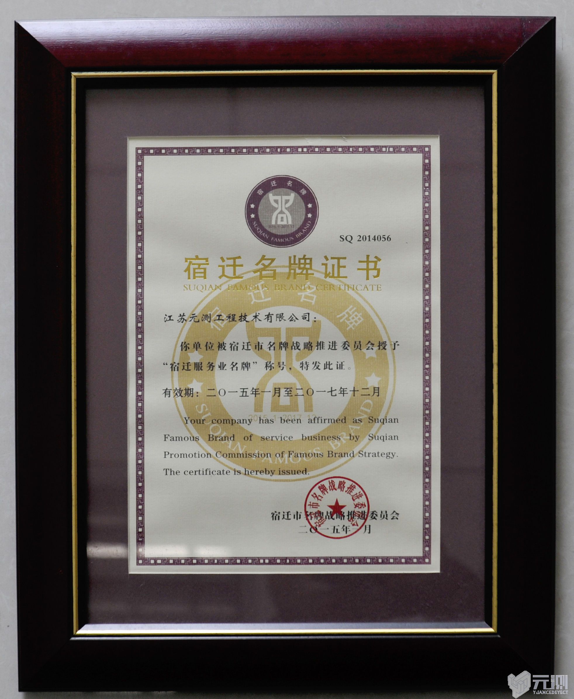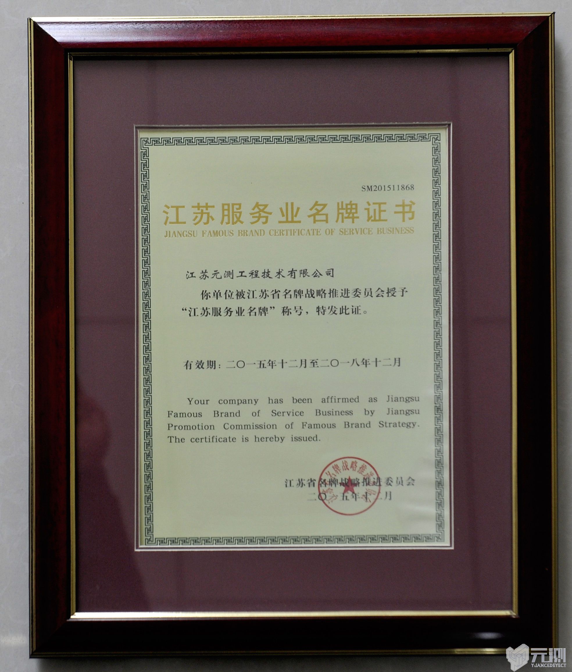 江蘇服務(wù)業(yè)名牌證書(shū)