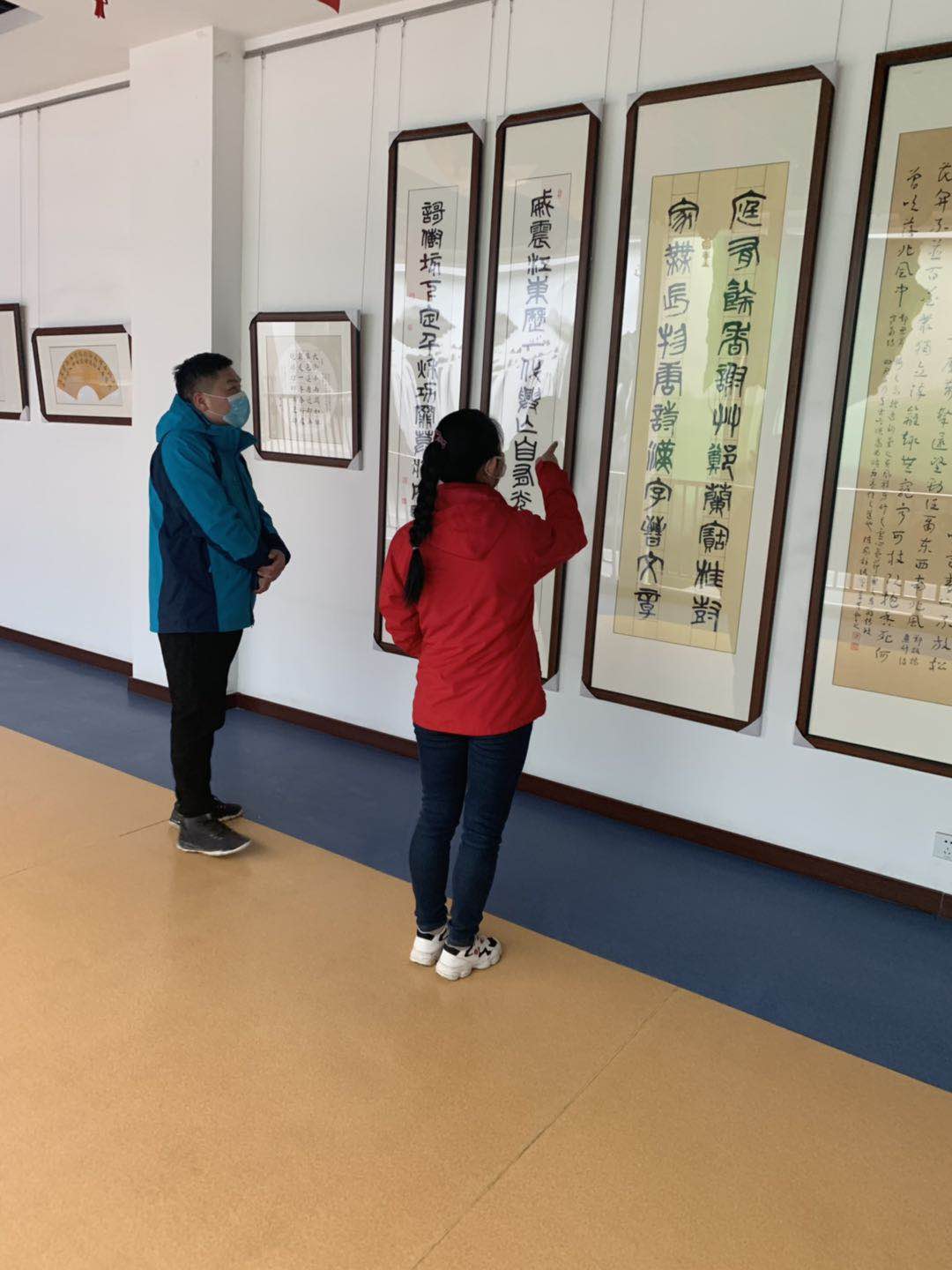 駐足欣賞書畫