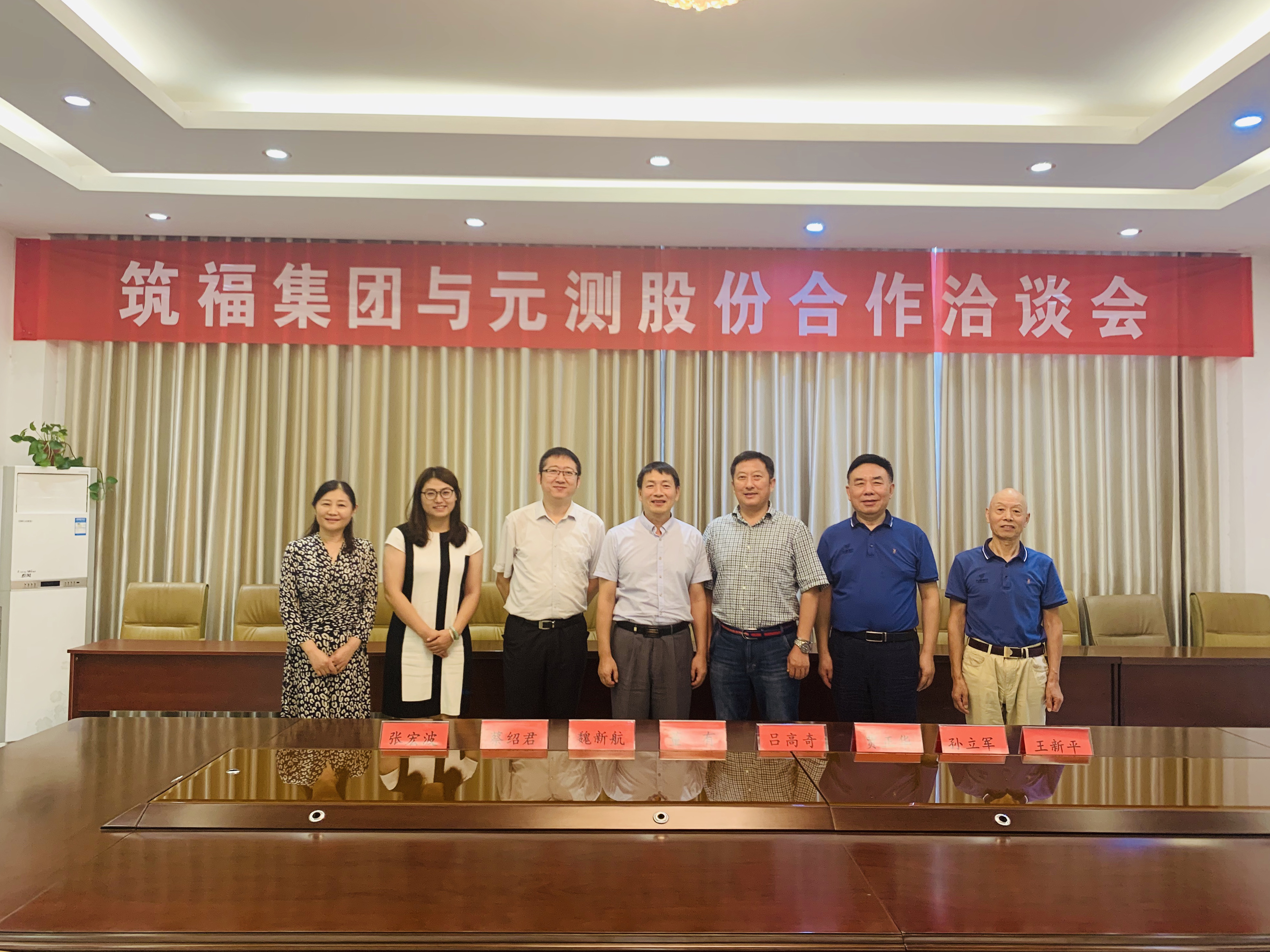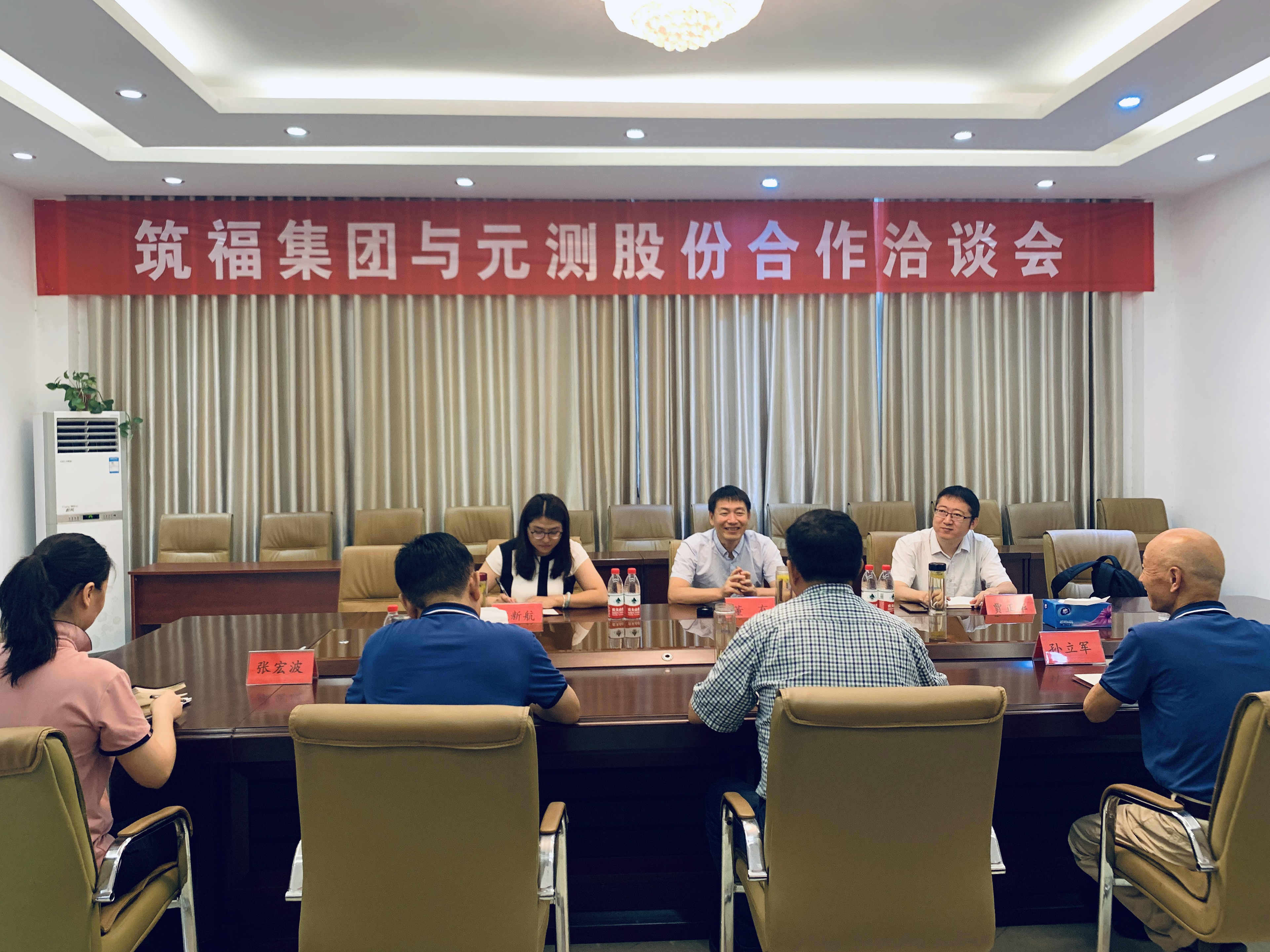 8月27日,秋高氣爽,元測股份與北京筑福集團(tuán)合作洽談會(huì),在宿遷經(jīng)濟(jì)技術(shù)開發(fā)區(qū)元測股份總部舉行。元測股份董事長呂高奇、總經(jīng)理蔡紹君,筑福集團(tuán)董事長董有、集團(tuán)副總裁賈正華、董事會(huì)秘書魏新航出席洽談會(huì)。