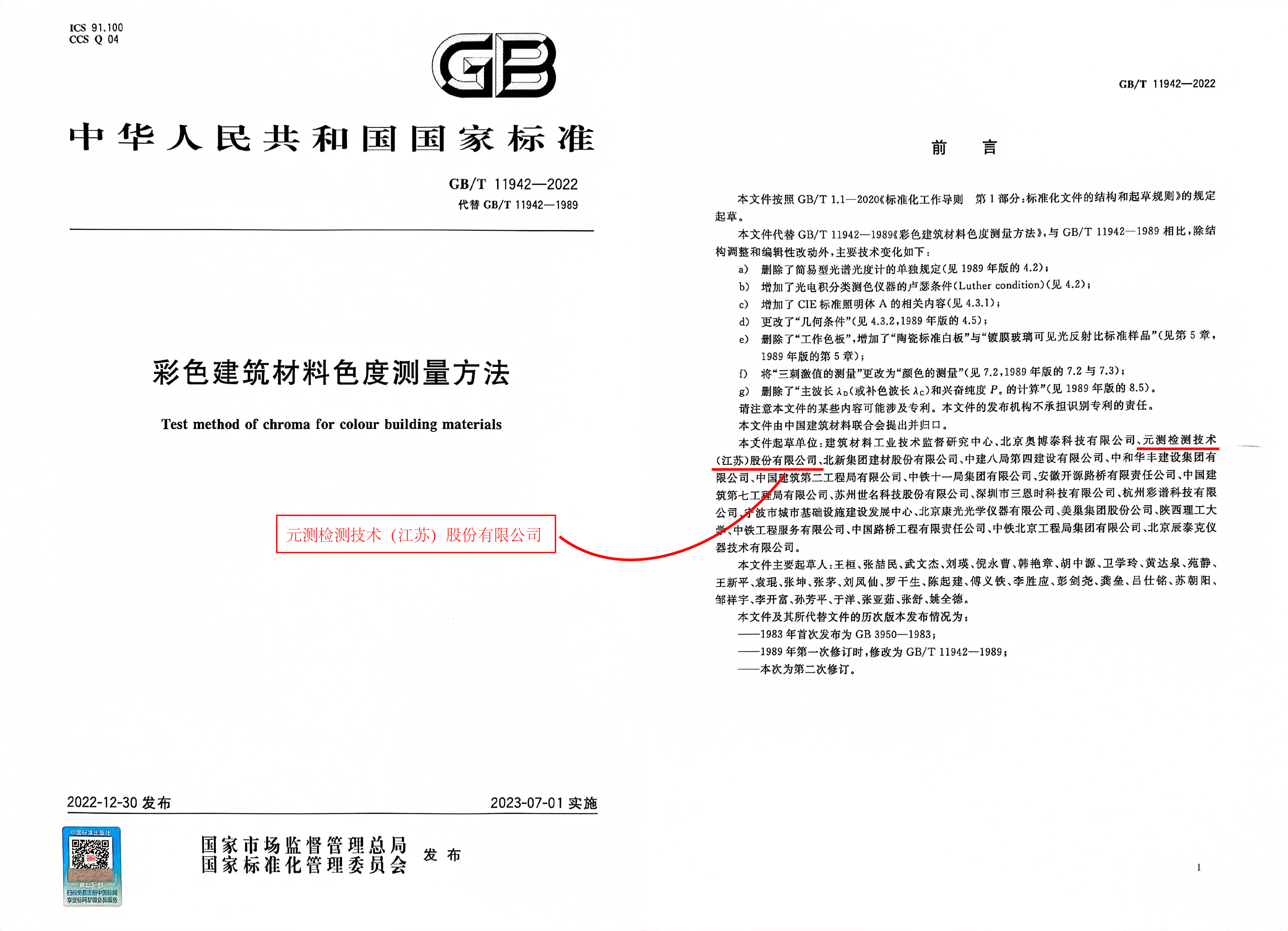 1、主導編制的國家標準《彩色建筑材料色度測量方法》7月1日頒布實施并獲政府30萬元大獎
