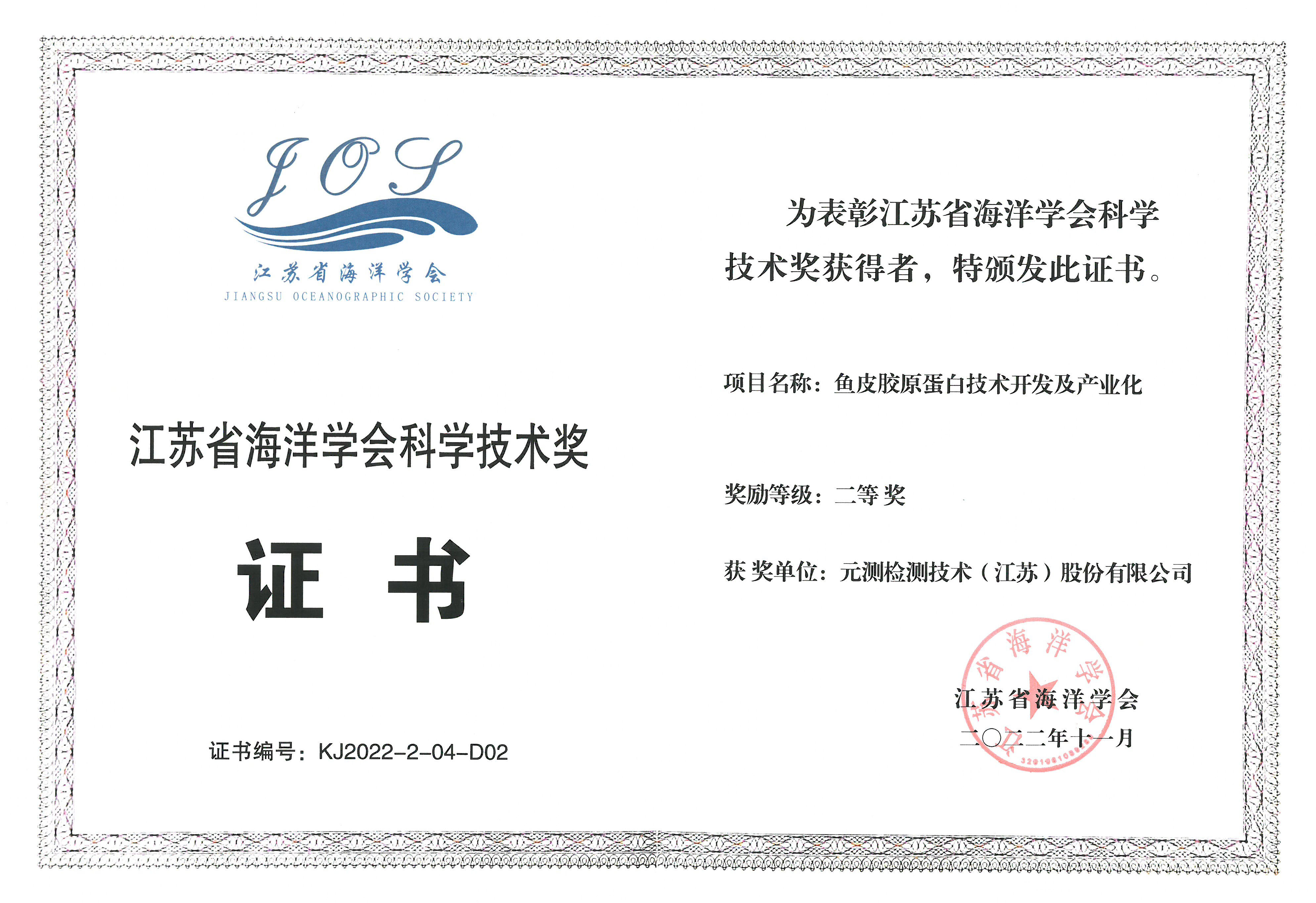 3、水產(chǎn)和魚皮膠原蛋白開發(fā)分獲上海江蘇海洋科學技術二等獎