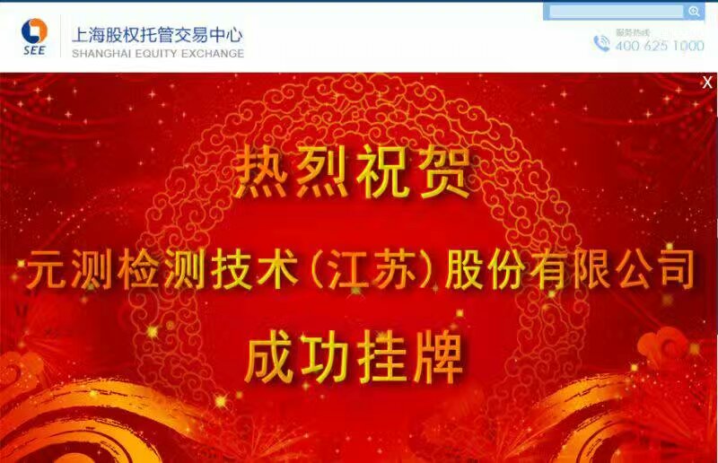 熱烈祝賀元測檢測技術(shù)(江蘇)股份有限公司成功掛牌