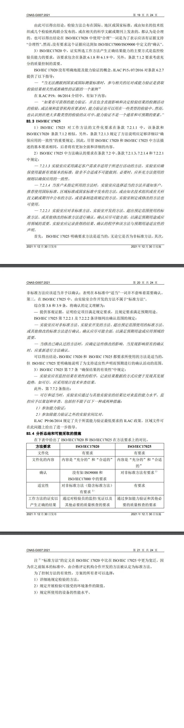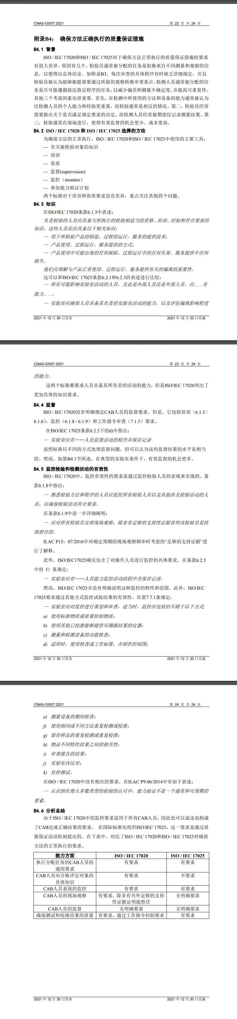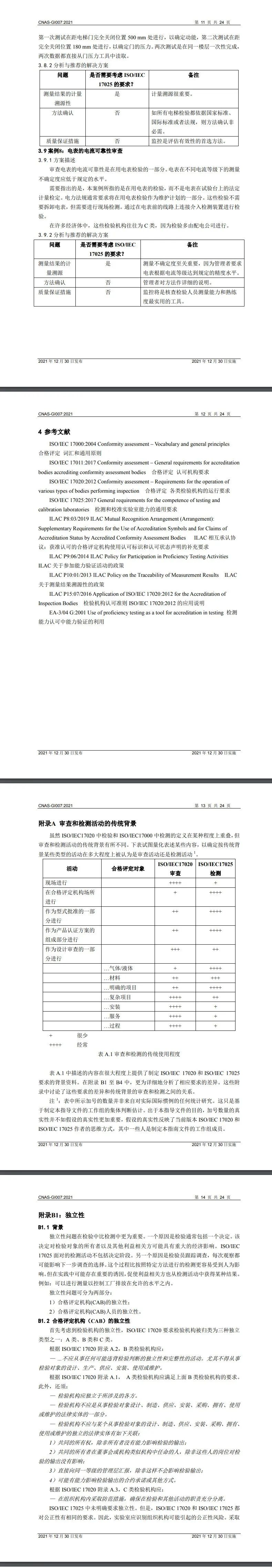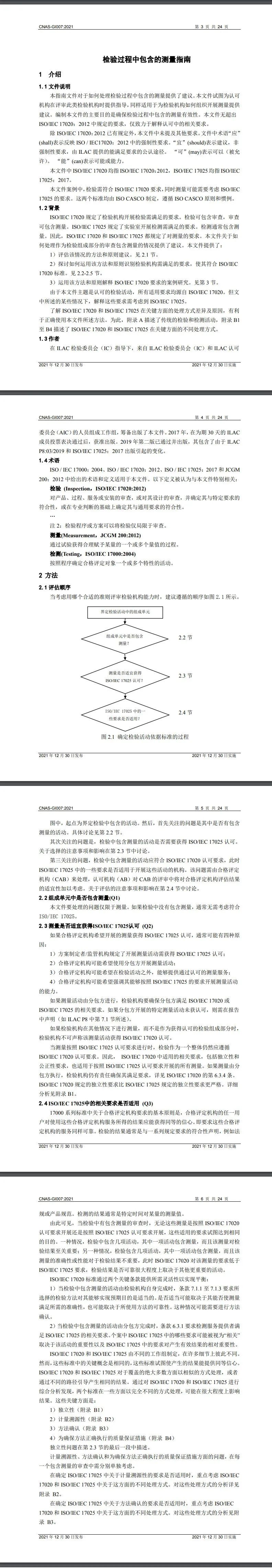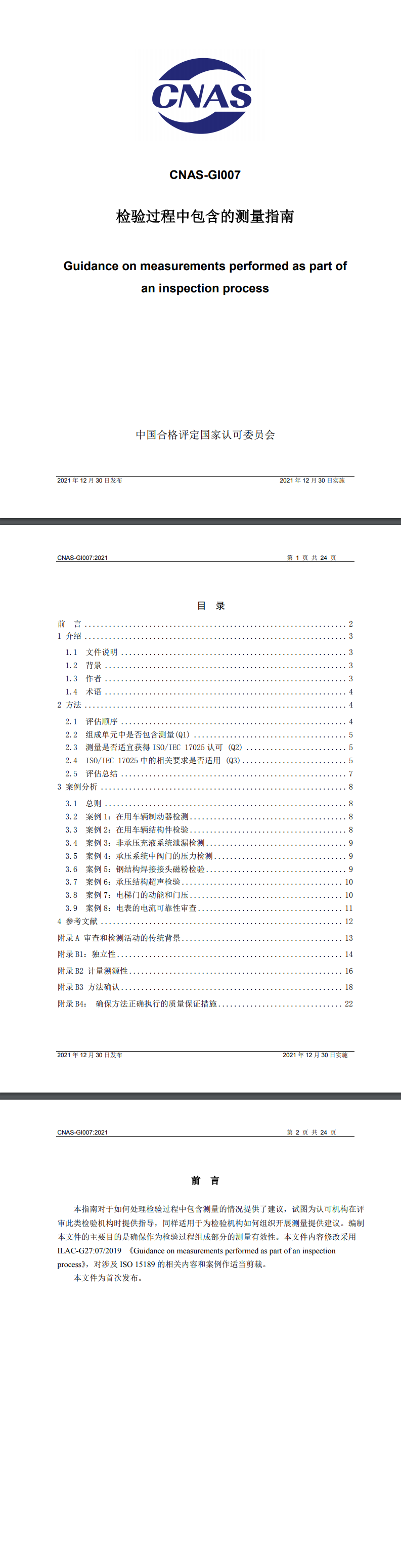 近日,中國合格評(píng)定國家認(rèn)可委員會(huì)(CNAS)編制了CNAS-GI007:2021《檢驗(yàn)過程中包含的測(cè)量指南》,對(duì)如何處理檢驗(yàn)過程中包含測(cè)量的情況提供了建議。該文件于2021年12月30日(今日)發(fā)布并實(shí)施,可在CNAS網(wǎng)站 “檢驗(yàn)機(jī)構(gòu)認(rèn)可/認(rèn)可規(guī)范/認(rèn)可指南”下載。完整文件如下: