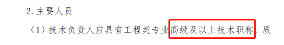 2、提高技術(shù)負(fù)責(zé)人、質(zhì)量負(fù)責(zé)人、注冊人員、技術(shù)人員的工作經(jīng)歷、人員數(shù)量、技術(shù)職稱、注冊證書、年齡等相關(guān)要求。