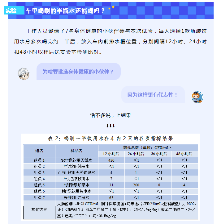 通過連續(xù)10天的取樣檢測,結(jié)果顯示,各類礦飲用水的質(zhì)量都很贊!均未檢出塑化劑,微生物結(jié)果也符合食品安全國家標(biāo)準(zhǔn)限量。