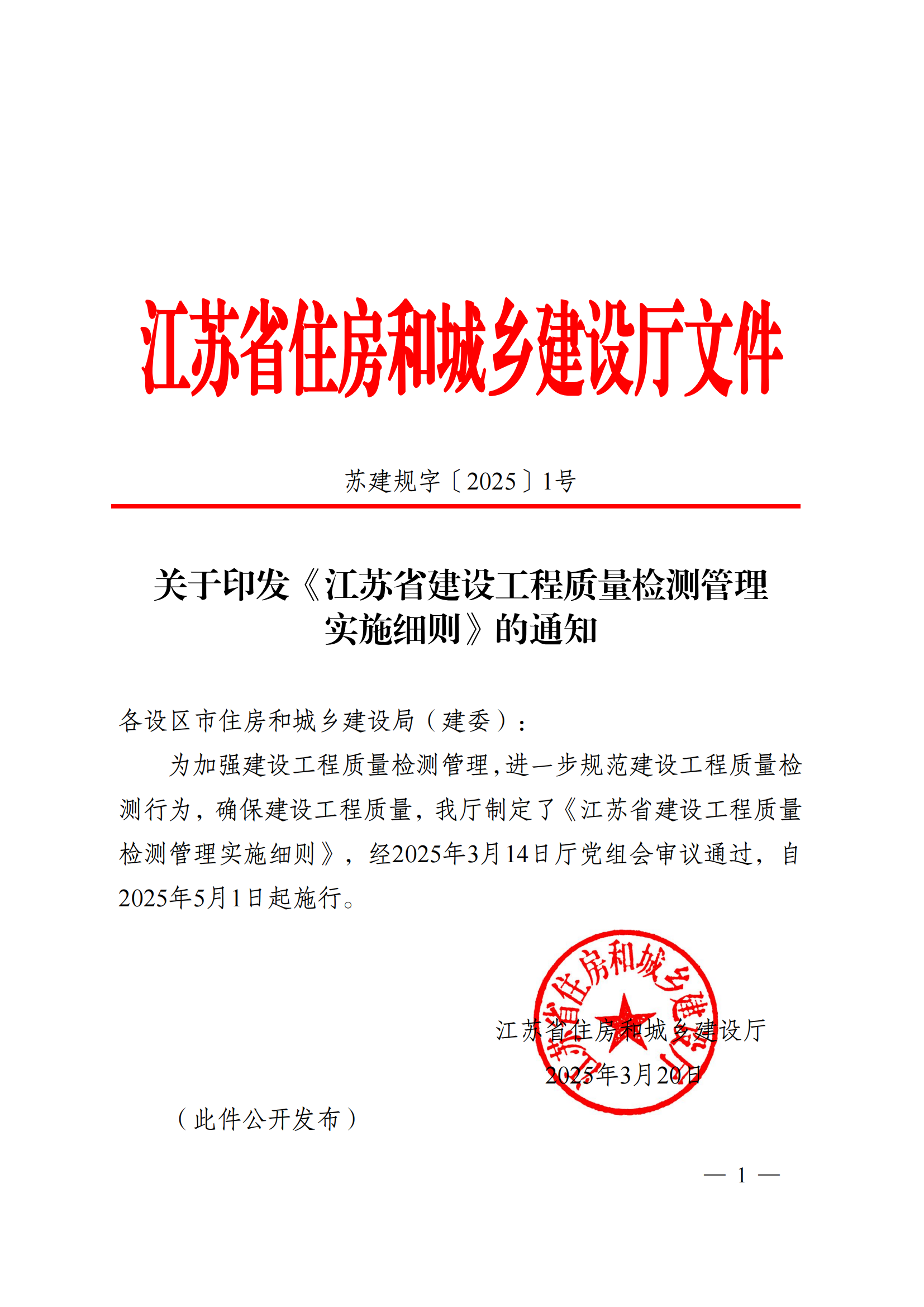 關(guān)于印發(fā)《江蘇省建設(shè)工程質(zhì)量檢測管理 實(shí)施細(xì)則》的通知