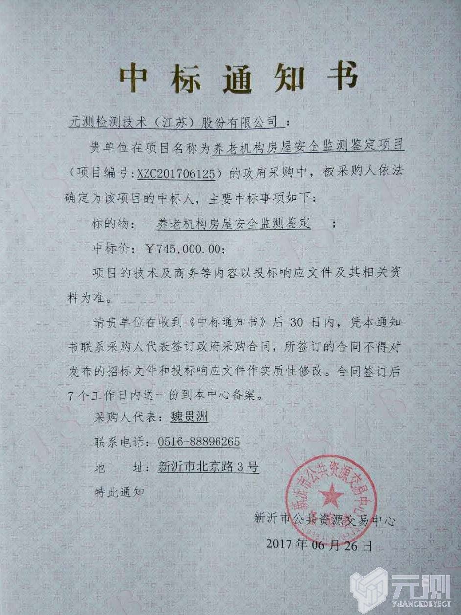 新沂市房屋安全監(jiān)測鑒定中標(biāo)書
