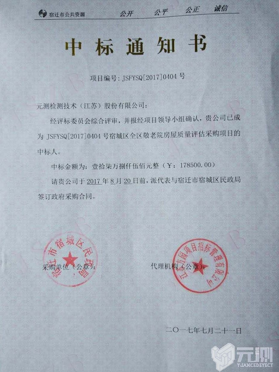 宿城區(qū)房屋安全監(jiān)測鑒定中標(biāo)書